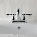 Offering a nod toward the past, this faucet is beautifully inspired by the vintage elegance of mid-19th Century design. Centerset bathroom faucets are ideal for smaller bathrooms and feature an easy 3-hole installation. The Tudor 4-inch centerset bathroom faucet with brass pop-up and its featured sturdy brass construction and premium polished chrome finish are guaranteed to glamorize your home's traditional ensemble for years to come. A unique and classically enchanting personality is embodied in this centerpiece. A matching finish drain is also included.