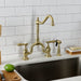 Kingston Heirloom KS7757BALBS - Heirloom Two-Handle 3-Hole Deck Mount Bridge Kitchen Faucet with Brass Sprayer, Brushed Brass