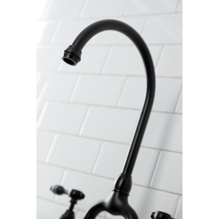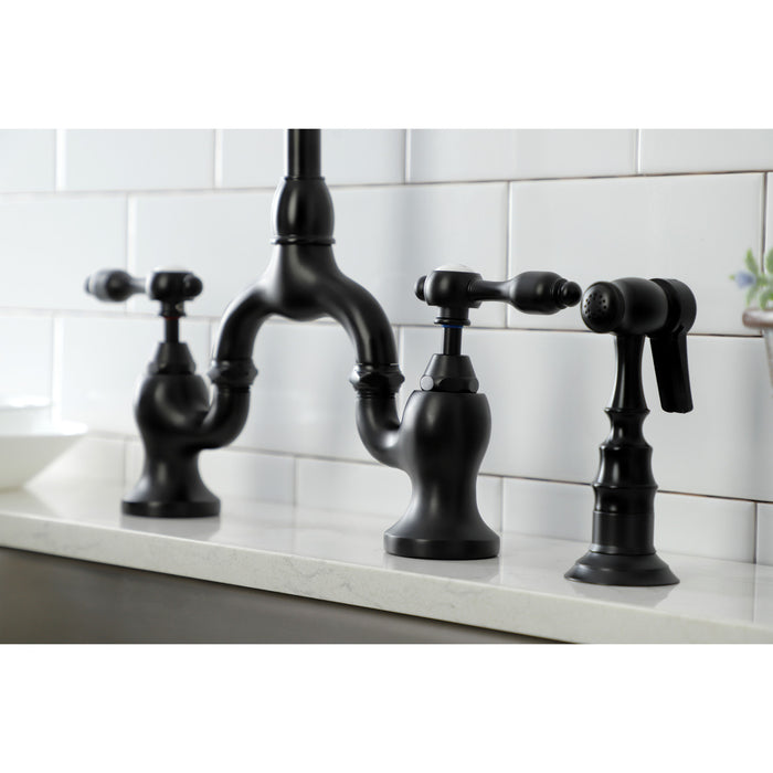 Kingston Heirloom KS7790TALBS - Tudor Two-Handle 3-Hole Deck Mount Bridge Kitchen Faucet with Brass Sprayer, Matte Black