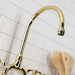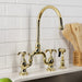 The dainty detailing of this faucet provides the delicacy of European antiquity along with top-of-the-line craftsmanship. Whether you are striving for a Victorian-inspired kitchen or a vibrant 1950s-themed space, the unique bridge design is a highly favored option amongst those doing period-style kitchens. Because of its added architectural elements and detailing, the polished brass finish will pop against your surrounding kitchen decor. Allow the brass construction, side sprayer, and swivel abilities to provide a sturdy and reliant fixture, great for use with any sink.