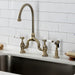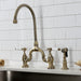 Kingston Heirloom KS7793BPLBS - Bel-Air Two-Handle 3-Hole Deck Mount Bridge Kitchen Faucet with Brass Sprayer, Antique Brass