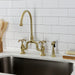 Kingston Heirloom KS7797TXBS - French Country Two-Handle 3-Hole Deck Mount Bridge Kitchen Faucet with Brass Sprayer, Brushed Brass