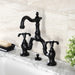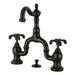 Kingston Heirloom KS7970TX - French Country Two-Handle 3-Hole Deck Mount Bridge Bathroom Faucet with Brass Pop-Up, Matte Black