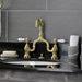 Kingston Heirloom KS7977BPL - Bel-Air Two-Handle 3-Hole Deck Mount Bridge Bathroom Faucet with Brass Pop-Up, Brushed Brass