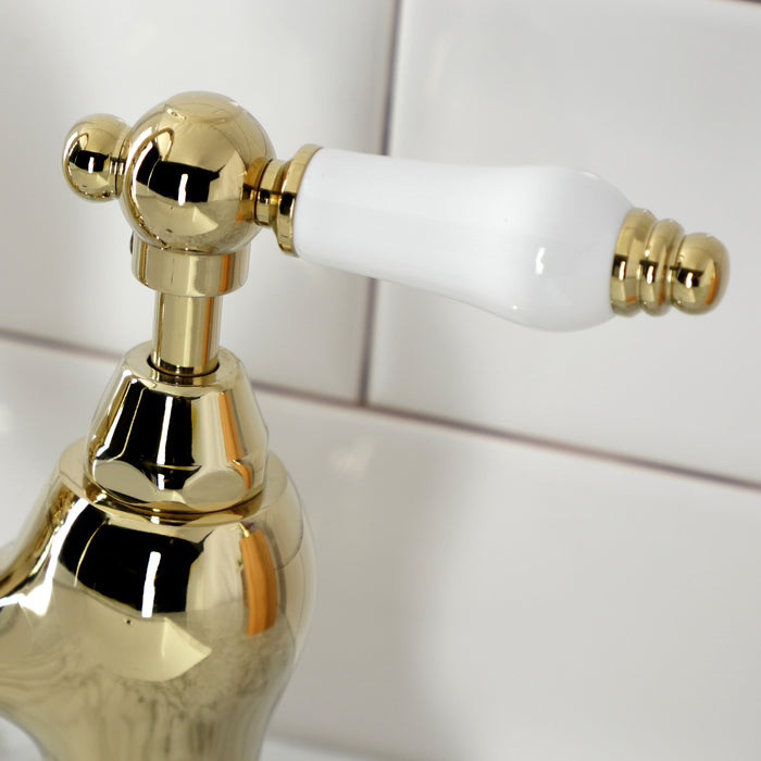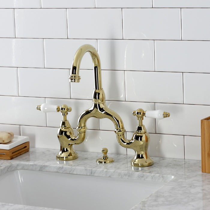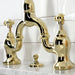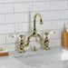 Kingston Tulare KS7992PL - English Country Two-Handle 3-Hole Deck Mount Bridge Bathroom Faucet with Brass Pop-Up, Polished Brass