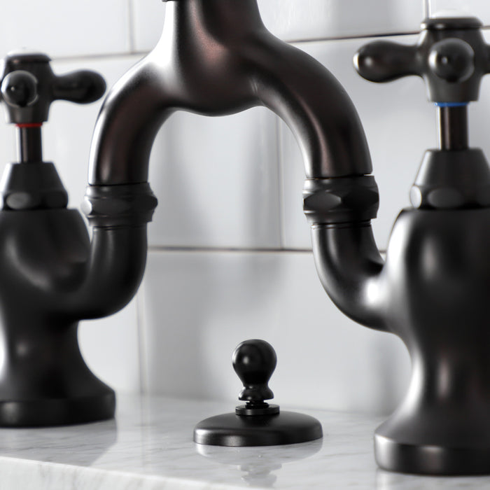 Kingston Heirloom KS7995AX - English Country Two-Handle 3-Hole Deck Mount Bridge Bathroom Faucet with Brass Pop-Up, Oil Rubbed Bronze