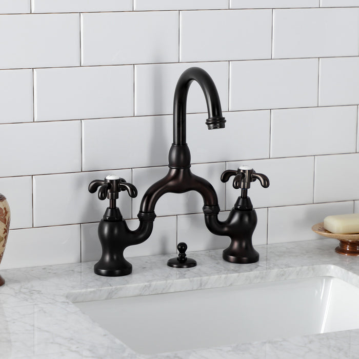 Kingston Heirloom KS7995TX - French Country Two-Handle 3-Hole Deck Mount Bridge Bathroom Faucet with Brass Pop-Up, Oil Rubbed Bronze