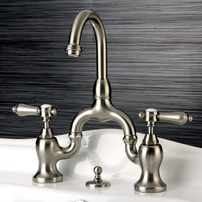 Kingston Heirloom KS7998BAL - Heirloom Two-Handle 3-Hole Deck Mount Bridge Bathroom Faucet with Brass Pop-Up, Brushed Nickel