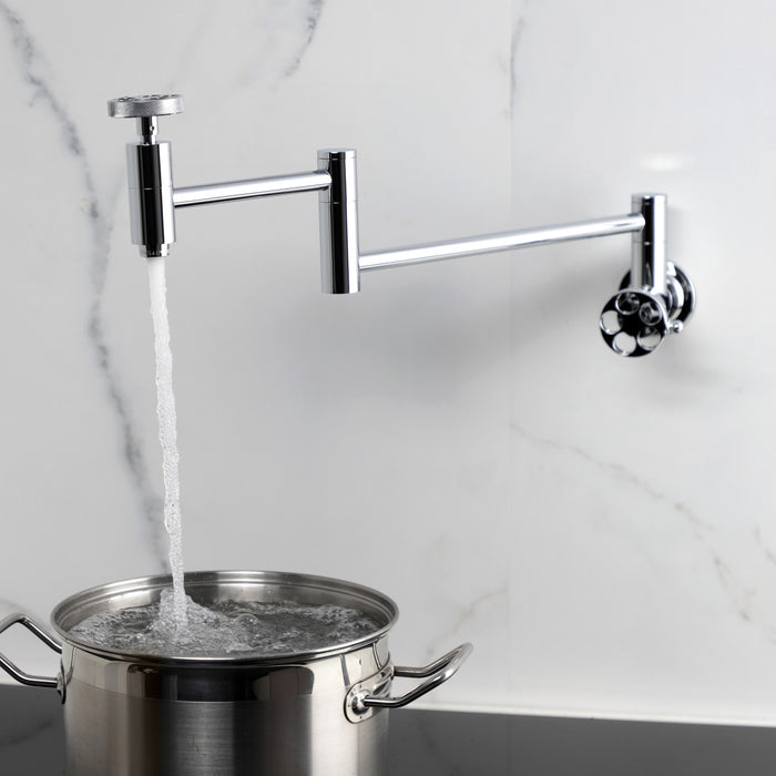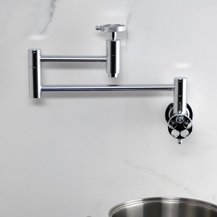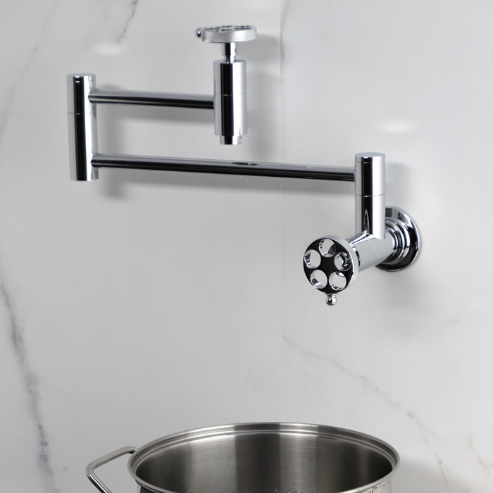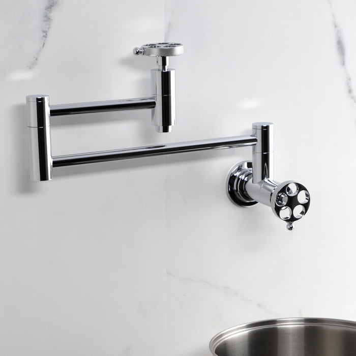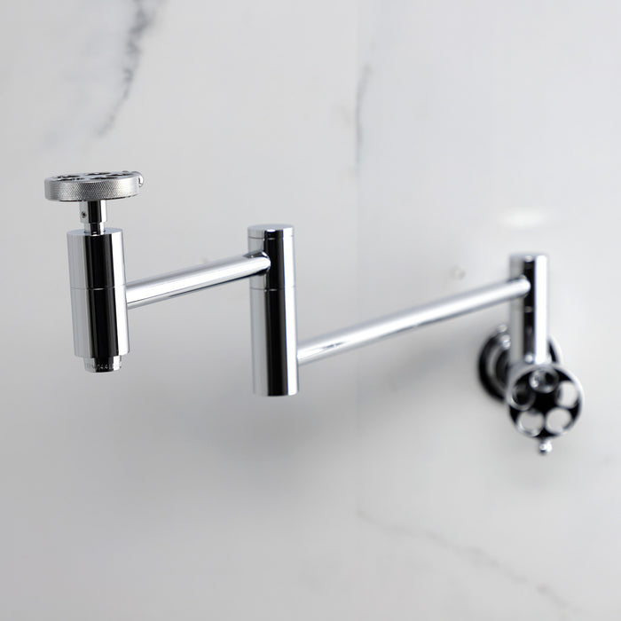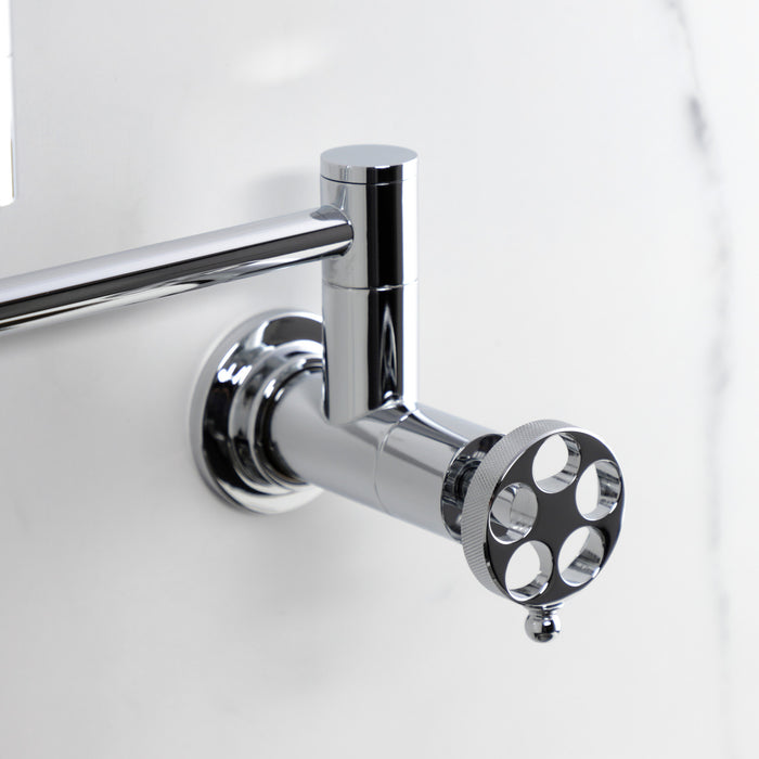 Kingston Sona KS8101RKZ - Wendell Two-Handle 1-Hole Wall Mount Pot Filler Faucet with Knurled Handle, Polished Chrome