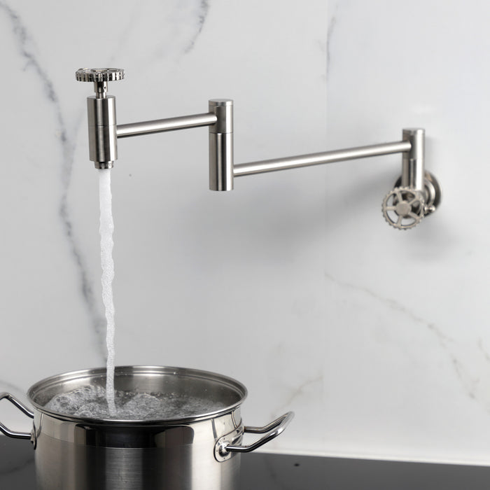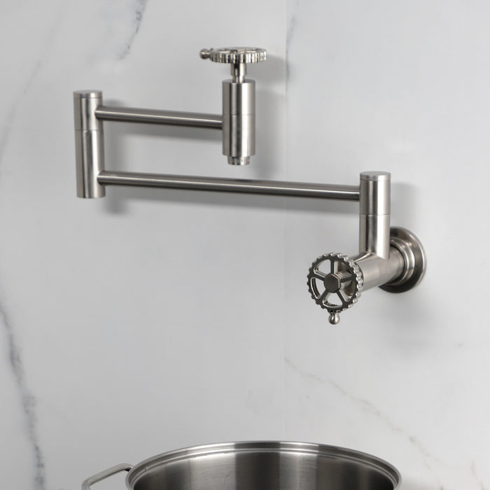 Kingston Sona KS8108CG - Fuller Two-Handle 1-Hole Wall Mount Pot Filler Faucet, Brushed Nickel
