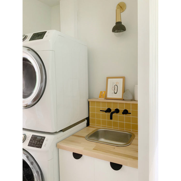This faucet boasts bold, sleek design with its cylindrical styling. Attached to the wall behind your sink, the horizontal pop adds a stunning element to your bathroom design. Clean-up is also made a breeze as counter space is cleared up. The Concord 8" Center Wall Mount Bathroom Faucet, with its featured sturdy brass construction and premium matte black finish, are guaranteed to glamorize your home's modern ensemble for years to come. Flash the radical brilliance of contemporary trends with this statement piece.
