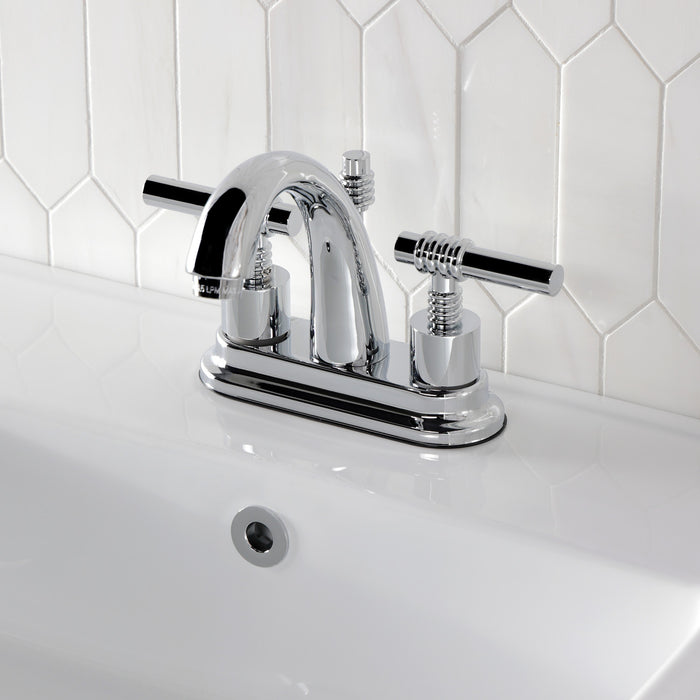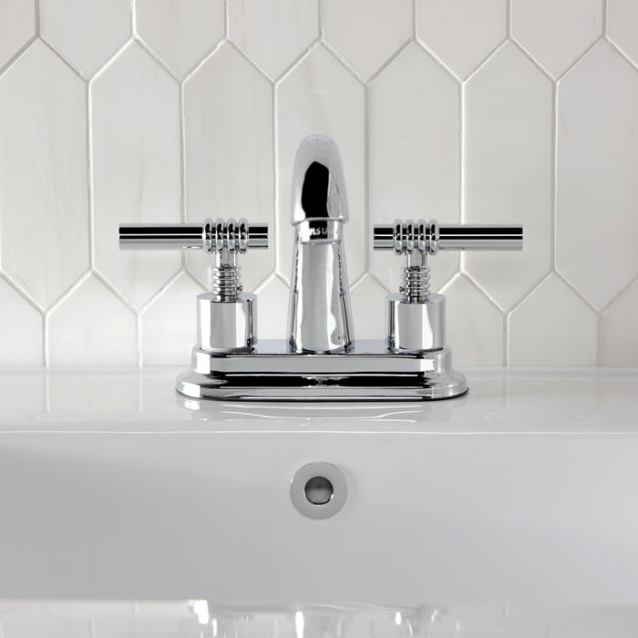 Kingston Tulare KS8611ML - Milano Double-Handle 3-Hole Deck Mount 4-Inch Centerset Bathroom Faucet with Brass Pop-Up, Polished Chrome