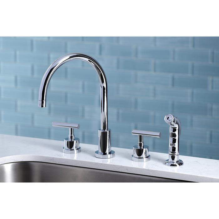Kingston Sona KS8721CML - Manhattan Double-Handle 4-Hole Widespread Kitchen Faucet with Plastic Sprayer, Polished Chrome