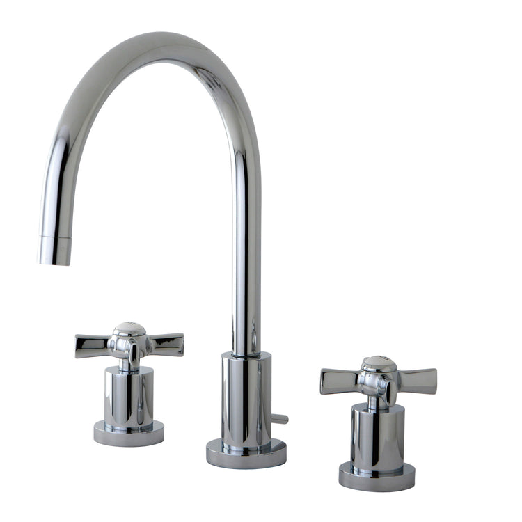 Kingston Tulare KS8921ZX - Millennium Two-Handle 3-Hole Deck Mount Widespread Bathroom Faucet with Brass Pop-Up, Polished Chrome