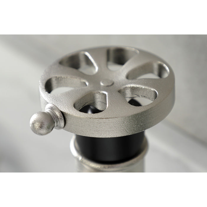 Kingston Sona KSD2828RX - Belknap One-Handle 1-Hole Bathroom Faucet with Deck Plate and Push Pop-Up Drain, Matte Black/Brushed Nickel