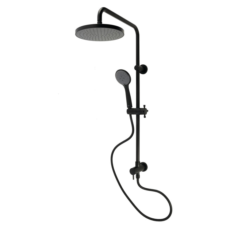 • Includes: showerhead, riser/slide bar with handshower holder, handshower and diverter