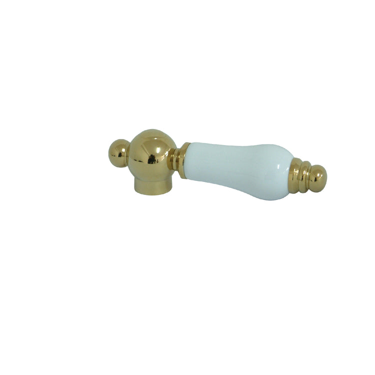 The Kingston Brass porcelain/metal lever handle provides effortless mobility and style for easy adjustment of water temperature and volume. Use as a replacement part to match with polished brass fixtures.