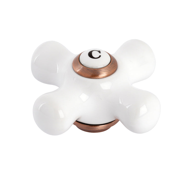 The Kingston Brass porcelain cross handle provides effortless mobility and style for easy adjustment of water temperature and volume. Use as a replacement part to match with antique copper fixtures.