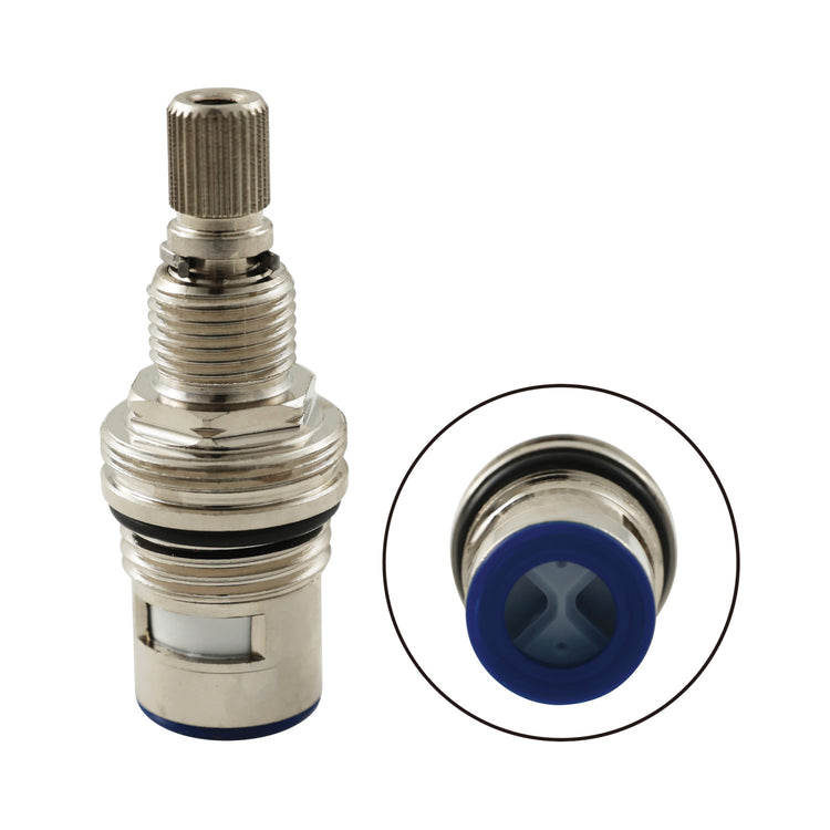 The ceramic disc cartridge is the heart of the faucet, controlling its temperature and water flow. Internally, two opposing discs made out of ceramic carbide rotate to control the flow of water. Because ceramic carbide is impervious to friction, it can last for many years before needing replacement.