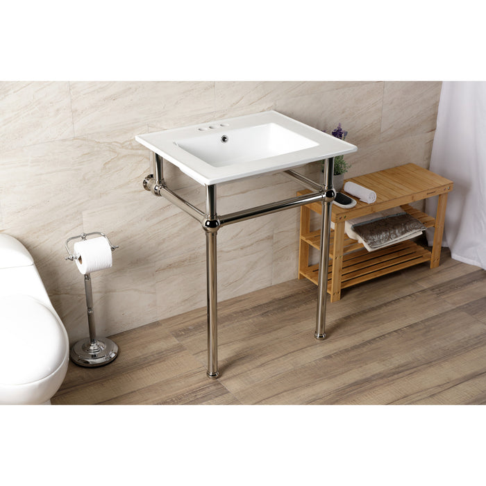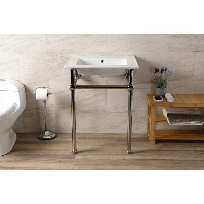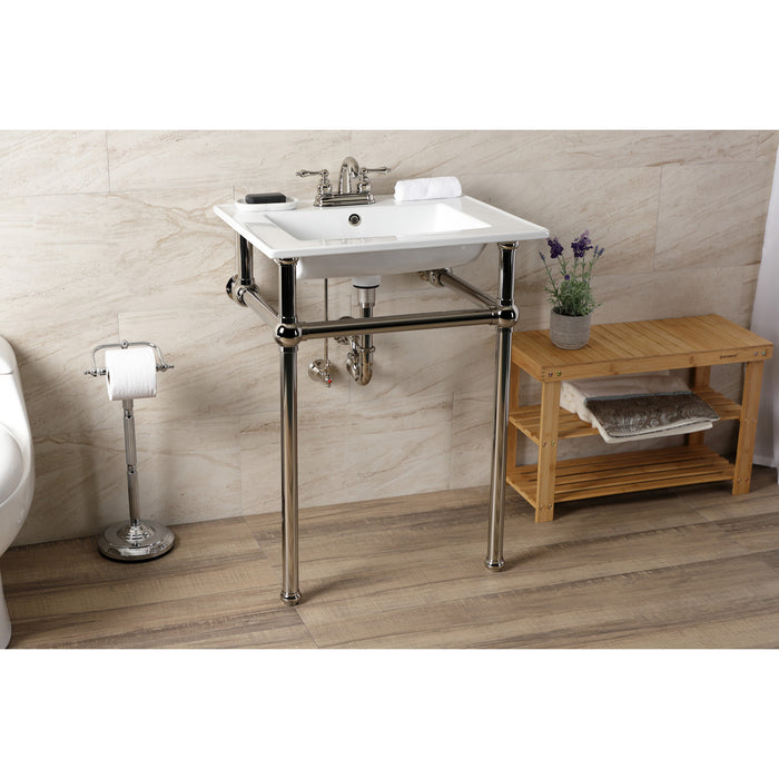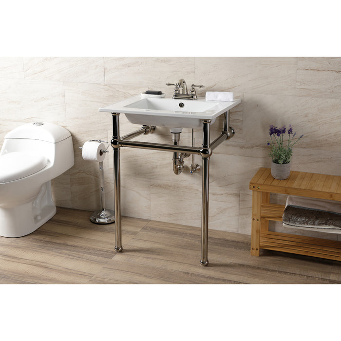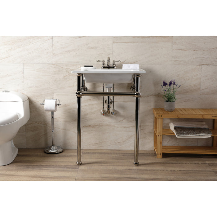 Kingston Heirloom KVBH25227W4B6 - Templeton 25-Inch Ceramic Console Sink with Brass Legs (4-Inch, 3-Hole), White/Polished Nickel