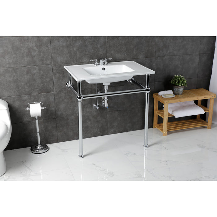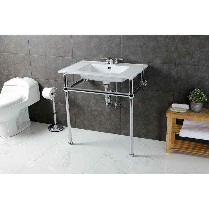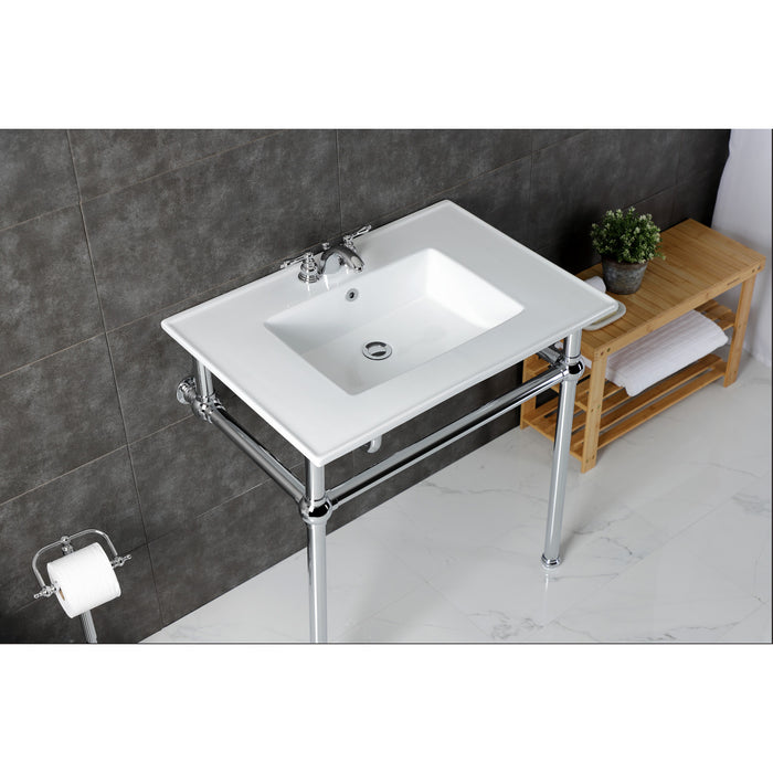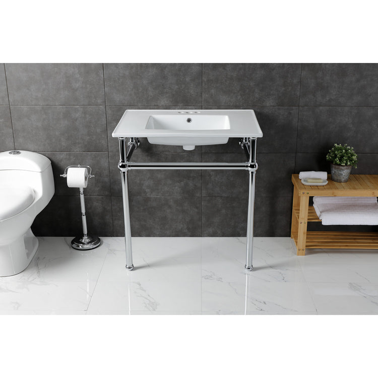 Kingston Heirloom KVBH31227W4B1 - Templeton 31-Inch Ceramic Console Sink with Brass Legs (8-Inch, 3-Hole), White/Polished Chrome