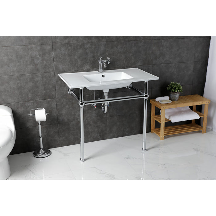 Kingston Heirloom KVBH37227C - Templeton 37-Inch Ceramic Console Sink with Brass Legs (1-Hole), White/Polished Chrome
