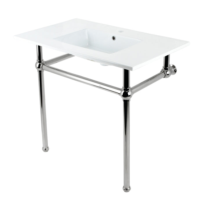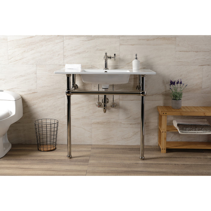 Kingston Heirloom KVBH37227PN - Templeton 37-Inch Ceramic Console Sink with Brass Legs (1-Hole), White/Polished Nickel