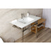 With a beautiful ceramic counter top, this console sink set is a long lasting, durable, and elegant addition to your bathroom. Solid ceramic sinks and tops like the LBT-series top in this listing are finished with a glossy glaze on the top and sink basin interior, making for a pristine, stain-resistant surface and glistening finish that is easily maintained. The underside and basin exterior are unglazed/unfinished and coated with a matte white protective sealant that prevents moisture absorption and staining. Solid ceramic pieces cannot be glazed on all sides, because the nature of ceramic material requires a minimum surface area be left raw during the glaze firing process so the piece does not explode. Also for your convenience, anti-slip rubber pads are included with the brass legs to ensure steadiness. Water supply kit, drain assembly, and the faucet are sold separately.