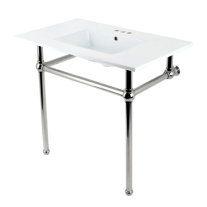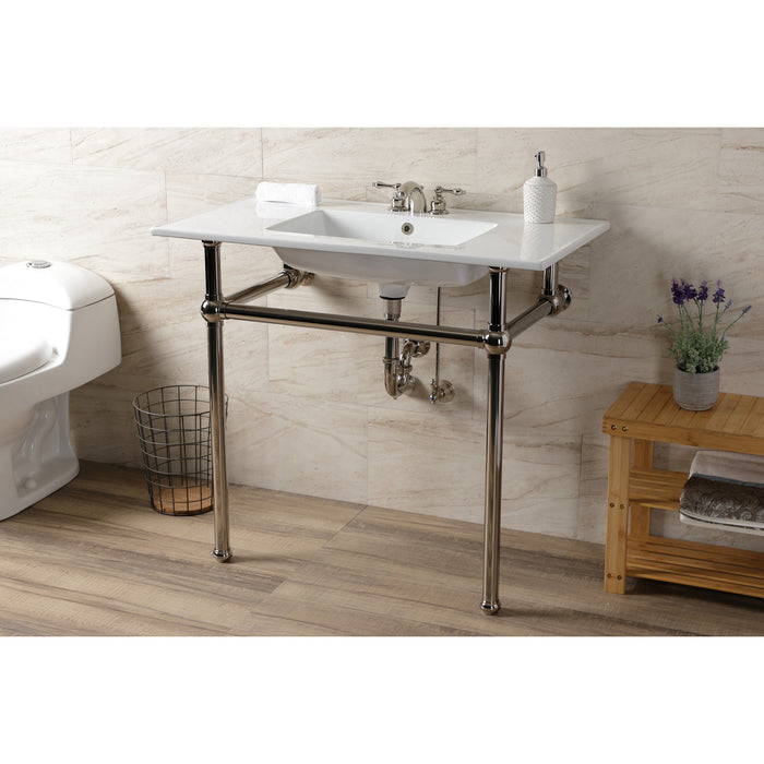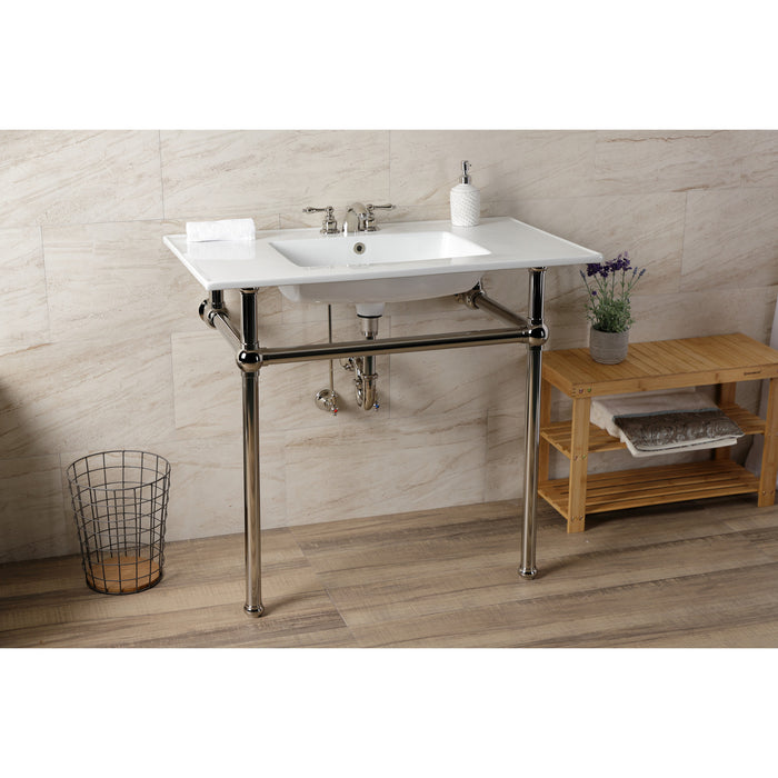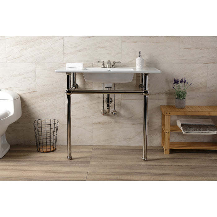 Kingston Heirloom KVBH37227W4PN - Templeton 37-Inch Ceramic Console Sink with Brass Legs (4-Inch, 3-Hole), White/Polished Nickel
