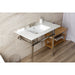 With a beautiful ceramic counter top, this console sink set is a long lasting, durable, and elegant addition to your bathroom. Solid ceramic sinks and tops like the LBT-series top in this listing are finished with a glossy glaze on the top and sink basin interior, making for a pristine, stain-resistant surface and glistening finish that is easily maintained. The underside and basin exterior are unglazed/unfinished and coated with a matte white protective sealant that prevents moisture absorption and staining. Solid ceramic pieces cannot be glazed on all sides, because the nature of ceramic material requires a minimum surface area be left raw during the glaze firing process so the piece does not explode. Also for your convenience, anti-slip rubber pads are included with the brass legs to ensure steadiness. Water supply kit, drain assembly, and the faucet are sold separately.