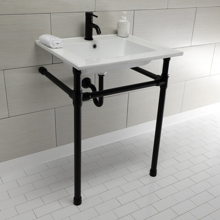 Kingston Tulare KVPB2522710 - Dreyfuss 25-Inch Ceramic Console Sink with Stainless Steel Legs (1-Hole), White/Matte Black