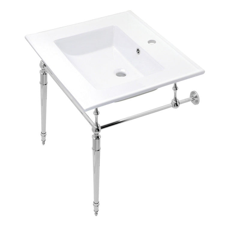 Kingston Heirloom KVPB252271CP - Edwardian 25-Inch Ceramic Console Sink with Brass Legs (1-Hole), White/Polished Chrome