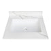 Crafted from exquisite white stone, a cutting-edge material renowned for its remarkable properties, this 25" x 22" vanity top exudes elegance and sophistication. With its seamlessly integrated undermount rectangular sink, this vanity top becomes a perfect complement to any bathroom decor when combined with suitable cabinet or console legs.