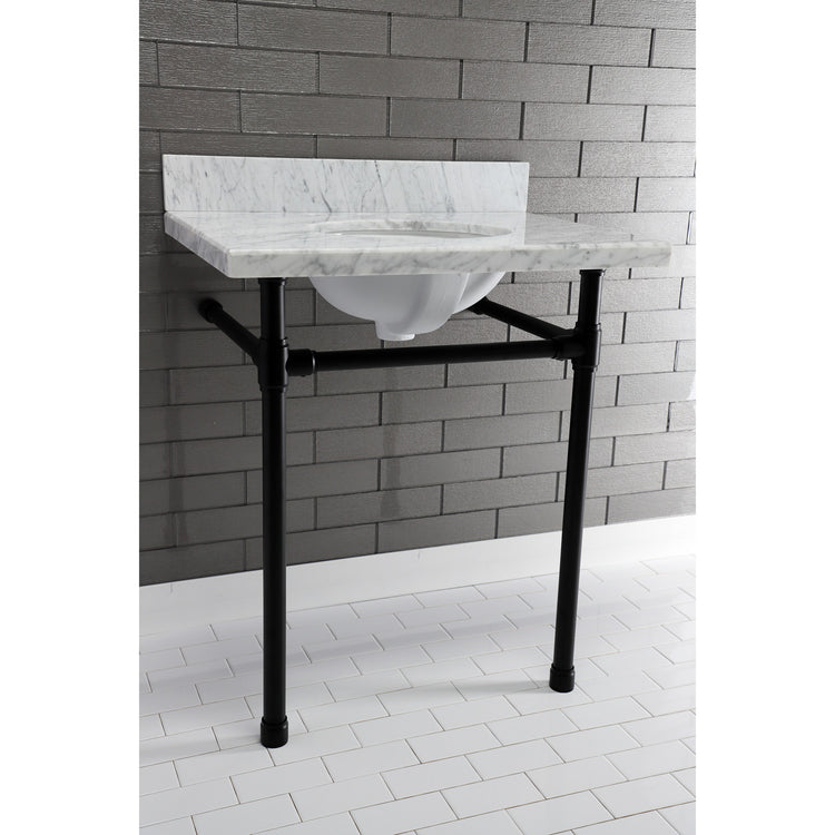 Built from a stunning Carrara marble for long-lasting durability, the Templeton 30 in. x 22 in. Carrara marble vanity top with oval sink offers elegant and transitional stylings. With different shades and natural designs, otherwise known as veining, no two sinks will be alike. Available in differing lengths, this vanity top in particular features dimensions of 30" (L) x 22" (W) x 12-1/4" (H). Pair this top with console legs, available in a variety of finishes. Kingston's carrara marble tops are polished, but they are not sealed. Polished marble has a shiny surface and resists stains. Natural stone, even when polished, is still somewhat porous and does remain susceptible to etching by acidic compounds like fruit juice, vinegar, some cleaning solvents, etc. For customers that wish to further protect their investment the marble can be sealed. The following is intended solely for informational purposes. Kingston does not warranty nor accept liability for damages or other negative outcomes resulting from any treatment or coating applied to the countertop after purchase, whether applied by the customer or by a third party. For anyone unfamiliar with this nature of project, Kingston recommends consulting an experienced professional in your area. When looking for a sealant product, please be sure to seek a product specifically designed for use on polished marble, granite or other natural stone surfaces. Be sure to always avoid anything containing a citrus ingredient, acid ingredient, tung oil, linseed oil, or other natural oils. These can damage or discolor your marble.