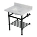 Kingston Heirloom KVPB3030MBSQB0 - Templeton 30-Inch Carrara Marble Console Sink with Brass Legs and Shelf (8-Inch, 3-Hole), Carrara Marble White/Matte Black