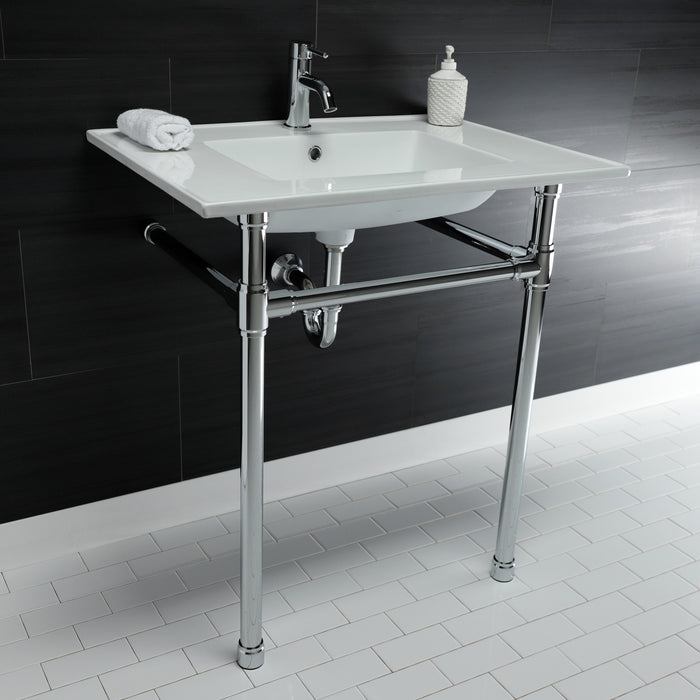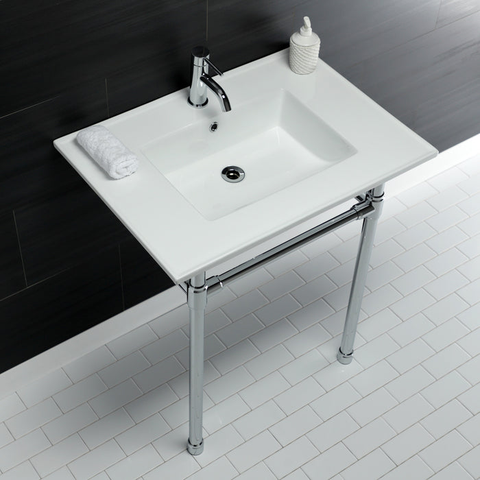 Kingston Tulare KVPB3122711 - Dreyfuss 31-Inch Ceramic Console Sink with Stainless Steel Legs (1-Hole), White/Polished Chrome