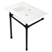 Dreyfuss KVPB31227W80 31-Inch Ceramic Console Sink with Stainless Steel Legs (8-Inch, 3-Hole), White/Matte Black