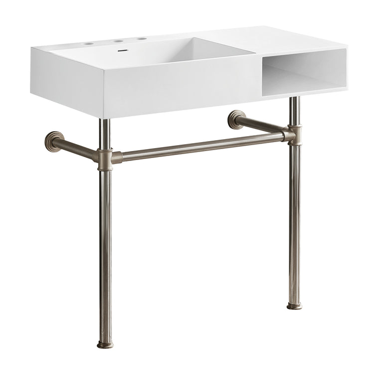 Kingston Sona KVPB3368SQA8 - Aurelius 36-Inch Solid Surface Console Sink with Stainless Steel Legs (8-Inch, 3-Hole), Matte White/Brushed Nickel
