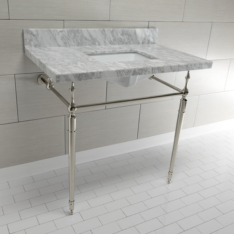 Edwardian KVPB3622M8SQ6 36-Inch Carrara Marble Console Sink with Brass Legs (8-Inch, 3-Hole), Carrara Marble White/Polished Nickel