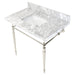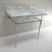 With a beautiful Carrara Marble counter top, this console sink set is a long lasting, durable, and elegant addition to your bathroom. A fabulous alternative where space is limited or tight, making them friendly for the whole family. With different shades and natural designs, otherwise known as veining, no two sinks will be alike. Also for your convenience, anti-slip rubber pads are included with the brass legs to ensure steadiness. Water supply kit, drain assembly, and the faucet are sold separately. Kingston's Carrara Marble tops are polished, but they are not sealed. Polished marble has a shiny surface and resists stains. Natural stone, even when polished, is still somewhat porous and does remain susceptible to etching by acidic compounds like fruit juice, vinegar, some cleaning solvents, etc. For customers that wish to further protect their investment the marble can be sealed. The following is intended solely for informational purposes. Kingston does not warranty nor accept liability for damages or other negative outcomes resulting from any treatment or coating applied to the countertop after purchase, whether applied by the customer or by a third party. For anyone unfamiliar with this nature of project, Kingston recommends consulting an experienced professional in your area. When looking for a sealant product, please be sure to seek a product specifically designed for use on polished marble, granite or other natural stone surfaces. Be sure to always avoid anything containing a citrus ingredient, acid ingredient, tung oil, linseed oil, or other natural oils. These can damage or discolor your marble.
