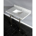 With a beautiful Carrara Marble counter top, this console sink set is a long lasting, durable, and elegant addition to your bathroom. A fabulous alternative where space is limited or tight, making them friendly for the whole family. With different shades and natural designs, otherwise known as veining, no two sinks will be alike. Also for your convenience, anti-slip rubber pads are included with the brass legs to ensure steadiness. Water supply kit, drain assembly, and the faucet are sold separately. Kingston's Carrara Marble tops are polished, but they are not sealed. Polished marble has a shiny surface and resists stains. Natural stone, even when polished, is still somewhat porous and does remain susceptible to etching by acidic compounds like fruit juice, vinegar, some cleaning solvents, etc. For customers that wish to further protect their investment the marble can be sealed. The following is intended solely for informational purposes. Kingston does not warranty nor accept liability for damages or other negative outcomes resulting from any treatment or coating applied to the countertop after purchase, whether applied by the customer or by a third party. For anyone unfamiliar with this nature of project, Kingston recommends consulting an experienced professional in your area. When looking for a sealant product, please be sure to seek a product specifically designed for use on polished marble, granite or other natural stone surfaces. Be sure to always avoid anything containing a citrus ingredient, acid ingredient, tung oil, linseed oil, or other natural oils. These can damage or discolor your marble.