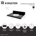 Fabricated from stunning Black Granite for long-lasting durability, the Templeton 30 in. x 22 in. This granite vanity top offers elegant and transitional stylings. Heavy, durable, and beautiful, our Black Granite vanity tops will give your bathroom an exquisite, antique look. With different shades and natural veining, no two tops will be alike. Also for your convenience, an oval ceramic under mount sink is attached to this granite countertop. The pristine, stain-resistant surface and glistening finish make for a very sturdy fixture that is easily maintained. This vanity top comes with a built-in backsplash. Pair this top with console legs, available in a variety of finishes. Kingston's black granite tops are polished and sealed. Polished black granite has a shiny surface and resists stains. Natural stone, even when polished, and sealed is still somewhat porous and does remain susceptible to etching by acidic compounds like fruit juice, vinegar, some cleaning solvents, etc.