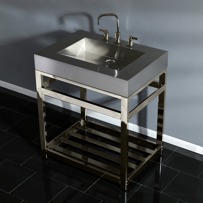 Kingston Sona KVSP3122A6 - Kingston Commercial 31-Inch Stainless Steel Console Sink with Steel Base (8-Inch, 3-Hole), Brushed/Polished Nickel