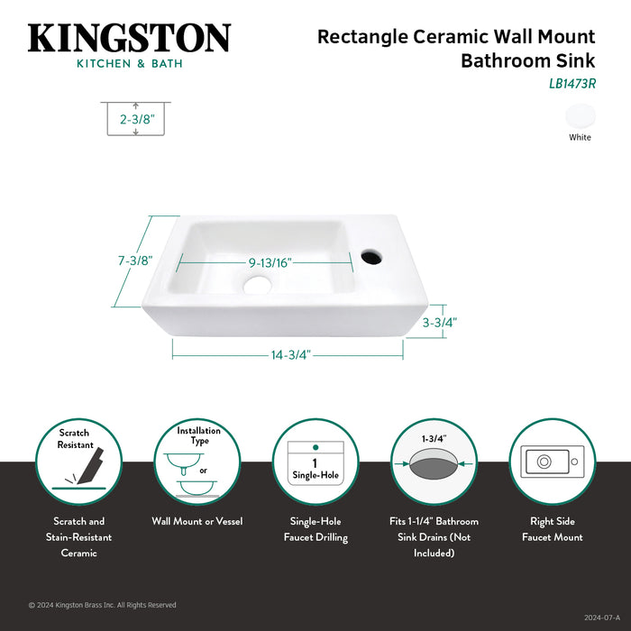 Kingston Sona LB1473R - Dibrach 14-3/4 Inch Rectangle Wall Mount Ceramic Bathroom Sink, White