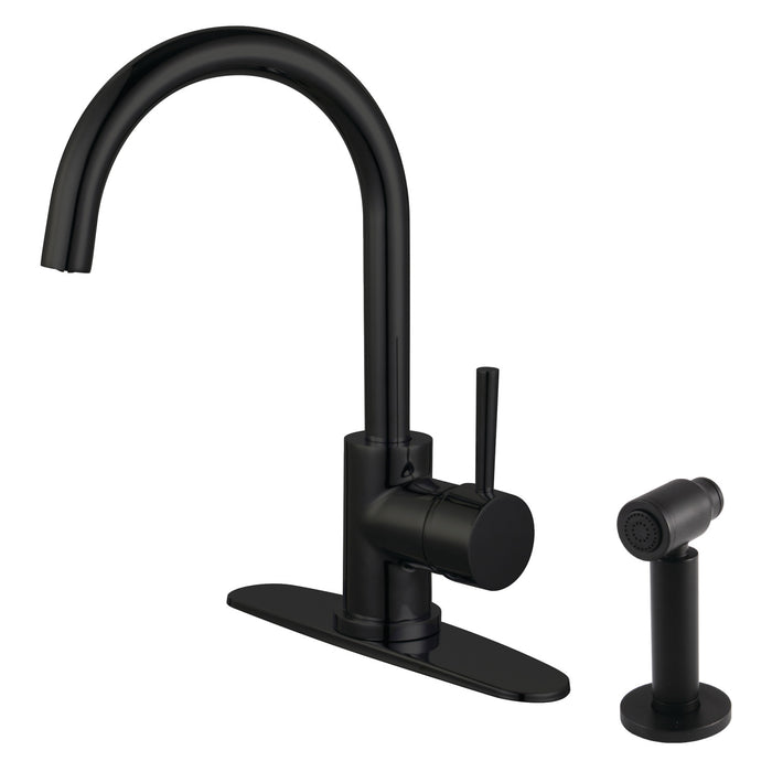 Kingston Sona LS8570DLBS - Concord Single-Handle 2-Hole Deck Mount Kitchen Faucet with Brass Side Sprayer, Matte Black