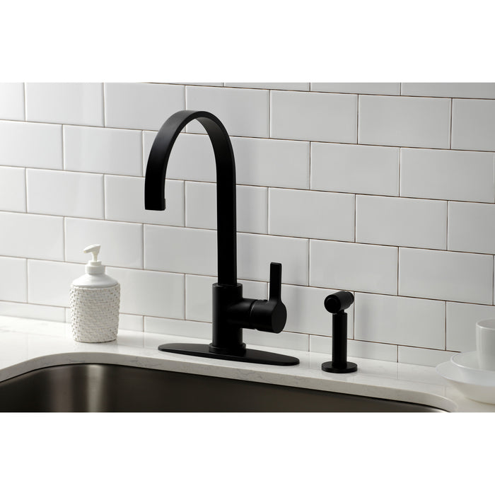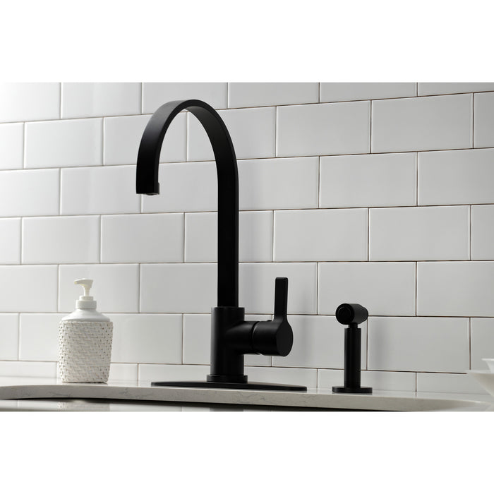Kingston Sona LS8710CTLBS - Continental Single-Handle 1-or-3 Hole Deck Mount Kitchen Faucet with Brass Side Sprayer, Matte Black