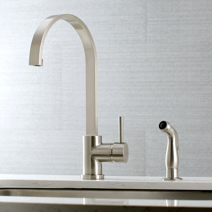 Kingston Sona LS8718DLSP - Concord Single-Handle 2-Hole Deck Mount Kitchen Faucet with Side Sprayer, Brushed Nickel