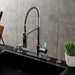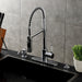 This faucet tastefully interweaves top-notch ergonomic design and the sheen of contemporary simplicity with its black silicone rubber coated handles and cylindrical facets. Designed for optimum versatility and functionality, modern day technology is provided for a state-of-the-art product. The Kaiser single-handle pre-rinse kitchen faucet features a high arching spout to easily clean larger dishes, swivel ability to reach any area in and around your sink, and a dual function pre-rinse sprayer to tackle tough messes. Matching accessories are available for use.