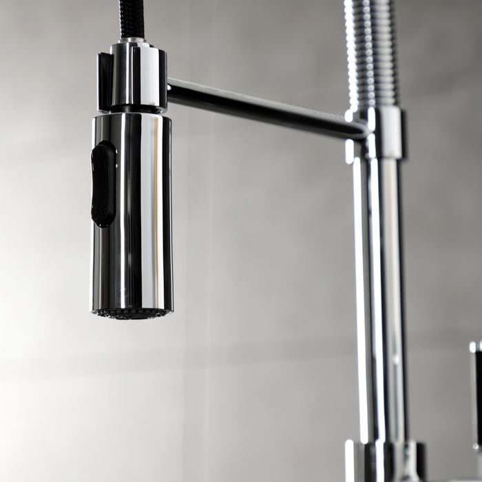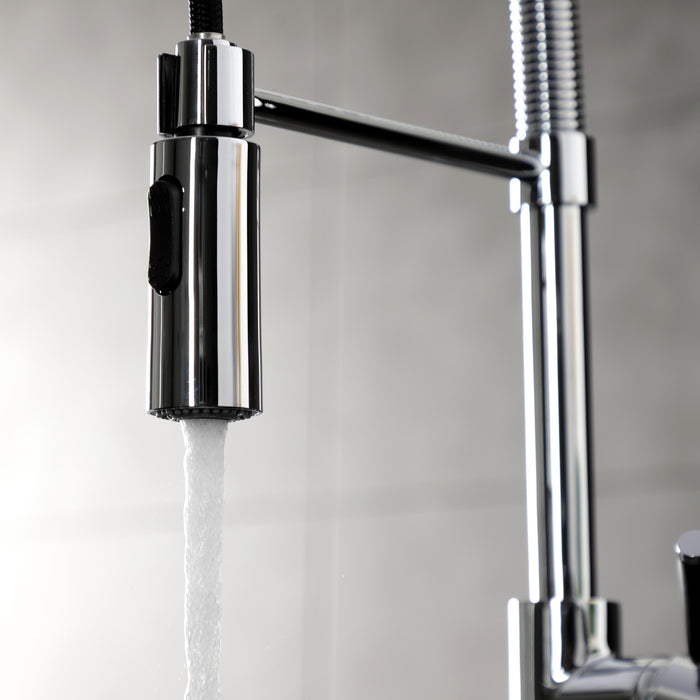 Kingston Sona LS8771DKL - Kaiser Single-Handle 1-Hole Deck Mount Pre-Rinse Kitchen Faucet, Polished Chrome