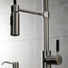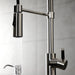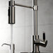 This faucet tastefully interweaves top-notch ergonomic design and the sheen of contemporary simplicity with its black silicone rubber coated handles and cylindrical facets. Designed for optimum versatility and functionality, modern day technology is provided for a state-of-the-art product. The Kaiser single-handle pre-rinse kitchen faucet features a high arching spout to easily clean larger dishes, swivel ability to reach any area in and around your sink, and a dual function pre-rinse sprayer to tackle tough messes. Matching accessories are available for use.